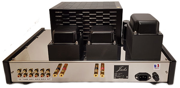 Like the Jadis Orchestra Reference MkII, the Orchestra Black is an integrated amp that uses two 6CA7/EL34 power pentodes per side, in push-pull, to produce 40Wpc in class-AB. Those pairs of output tubes are driven by a single 12AX7 dual-triode tube per channel. Upstream from the tubes, a single NPN transistor per channel (a 2N1711 in a TO-39 case) provides voltage gain. The output tubes are operated in fixed-bias mode: Each one has its own trim pot for adjusting the DC voltage applied to its signal grid, and each cathode is connected straight to ground. (Contrast that with the use of a 1 ohm cathode resistor, the presence of which allows for easier adjustment of bias current: With 1 ohm in the circuit, volts and amperes are equivalent.) For that reason, and because the amplifier's enclosure is the very devil to open—to do so requires the removal of 13 hex-head bolts, 10 screws, four feet, and one wooden end cap—adjusting bias, as is required when changing tubes, is best left to a qualified technician. And that would seem to cast a slight pall on the idea of tube-rolling, at least as far as the output tubes are concerned. (The amp arrives prebiased for the supplied tubes, the individual boxes for which are labeled in accordance with the tubes' positions.)