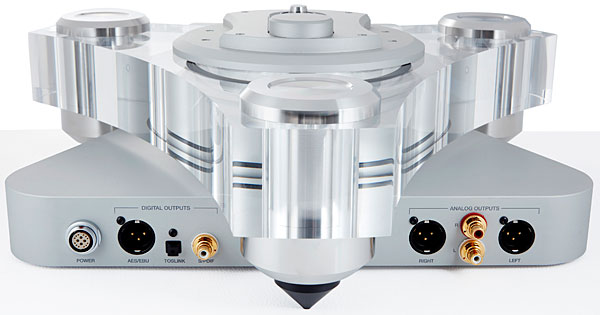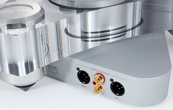 The CD-playing portion of the DreamPlay One has an exotic appearance, owing to both its distinctive shape and the materials used in its manufacture. It comprises two structures, both triangular in the broadest sense of that word, juxtaposed so that the player's overall shape is more or less that of a hexagram: the lower structure is a machined-aluminum enclosure for the electronics, while the upper structure is made of clear methacrylate, with conical steel feet at the bottoms of three gold-colored cylindrical supports, apparently machined from aluminum. Clauzel told me via e-mail that the DreamPlay One's appearance was determined in part by sonic concerns: "[T]he choice of materials and their mix makes a real difference. In particular, aluminum, methacrylate, and steel don't absorb and transmit vibrations the same way, so their combination results in a very efficient decoupling."