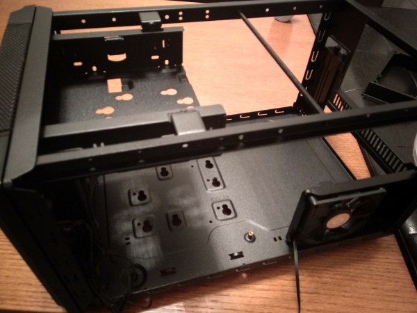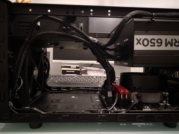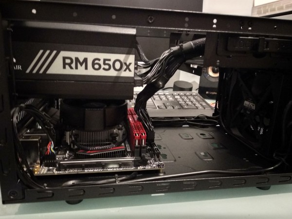 Σχετικά με το τροφοδοτικό, έχει εντελώς δικό του flow path αφού τραβάει από πάνω, και βγάζει από πίσω. Αν παρατηρήσεις είναι τοποθετημένο ανάποδα (λολ). Αν ήταν τοποθετημένο με το fan κάτω, θα ανταγωνιζόταν το cooler του επεξεργαστή και σε τόσο στριμωγμένες καταστάσεις δε το θέλουμε καθόλου αυτό!