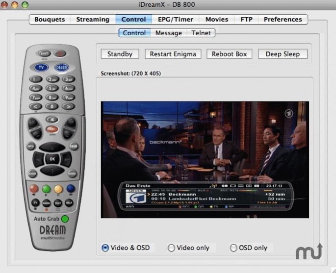 PPC / Intel, Mac OS X 10.5.8 or later, VLC v1.1.5 or newer, Satellite or Cable Box with Enigma1 or Enigma2, Like: Dreambox, VU+, Kathrein, Topfield e.t.c.