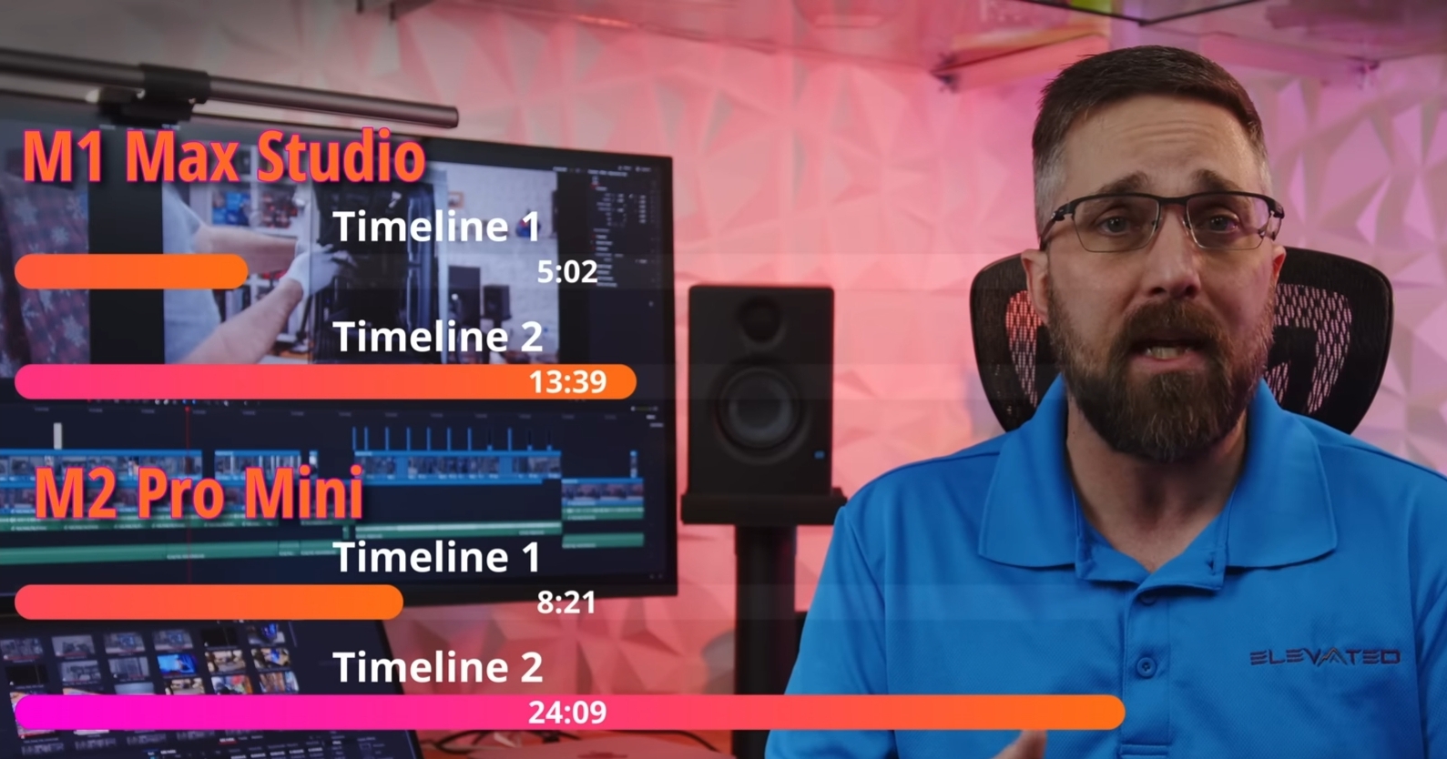 Το παρακάτω screenshot είναι από αυτό το video. To βάζω επειδή αποδεικνύει όσα έχω ήδη γράψει. Το Mac Studio M1 Max είναι παλαιότερο από το Μac Mini M2 Pro. Το Mac Studio όμως είναι επαγγελματικό μηχάνημα. Και παρόλο που φοράει πάνω τον παλαιότερο Μ1 Μax τον πατάει κάτω τον νεότερο Μ2 Pro στο Mac Mini. Φαντάσου πως πάει ο Μ2 Max μέσα στο Mac Studio. Φαντάσου τι κάνει ο Μ1 Ultra μέσα στο Mac Studio. Θα το δούμε σε επόμενη ανάρτηση.