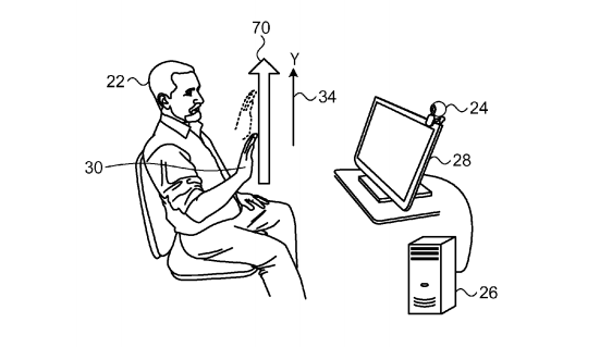 The US Patent No. 8933876 details Apple's plans for creating a user interface controlled by hand and arm gestures via PrimeSense's motion-sensing hardware. A 3D camera is used to track the user's movements, which are them translated into digital commands that control on-screen actions. Some of the gestures include push and wave motions that can do things like minimize windows on the screen.