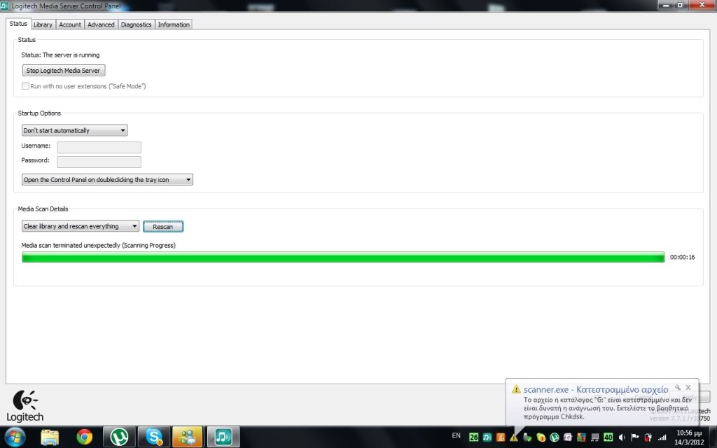 Πριν λιγο συνδεσα τον σκληρο στο λαπτοπ να φορτωσω τον media server,και οταν αρχισε να φορτωνει μετα απο ενα λεπτο μου εβγαλε το μυνημα που φαινεται κατω δεξια.
