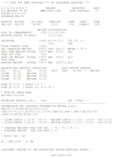 Η Υ Π Ο Γ Ρ Α Φ Η που μπαίνει...?Παράδειγμα load sheet