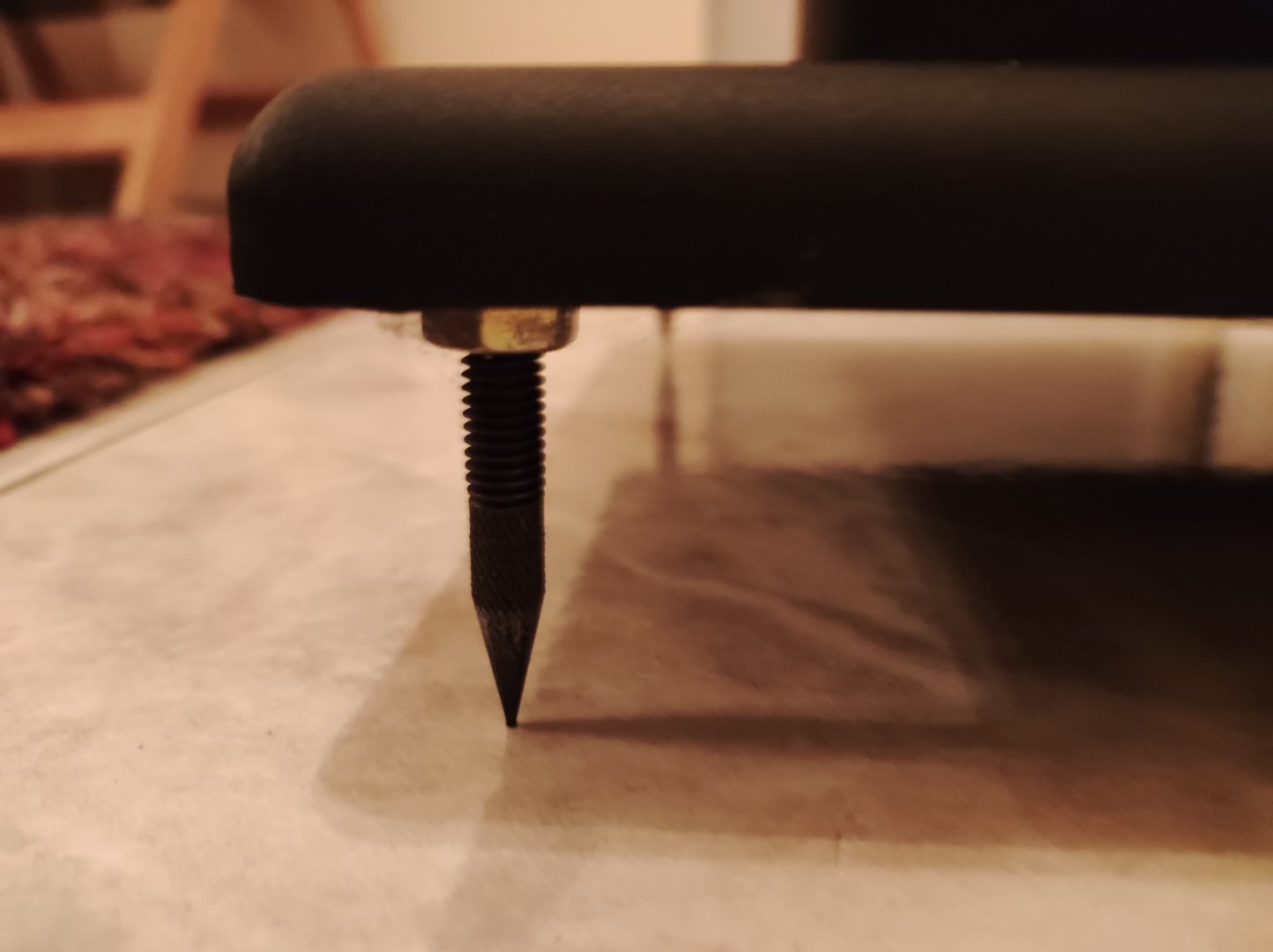 Το πλατώ που ακουμπούν τα ηχεία διαθέτει στις 4 γωνίες ανυψούμενες βίδες με ελαστική επικάλυψη σε περίπτωση που θέλουμε να σηκωθεί το ηχείο λίγο περισσότερο.