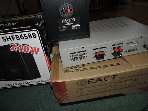 ΣΤΕΡΕΟ ΕΝΙΣΧΥΤΗΣ REACT AV 1300 V2 (2X30WRMS)+HΧΕΙΑ FENTON SHFB-658B(50WRMS) σαν καινουργια στα κουτια τους τα φεντον εχουν εγγυηση(δωρο φορητο dvd felix με εισοδο usb sto κουτι του),τιμη πακετου 60ε σταματης μαρουσι.τηλ 6936536627