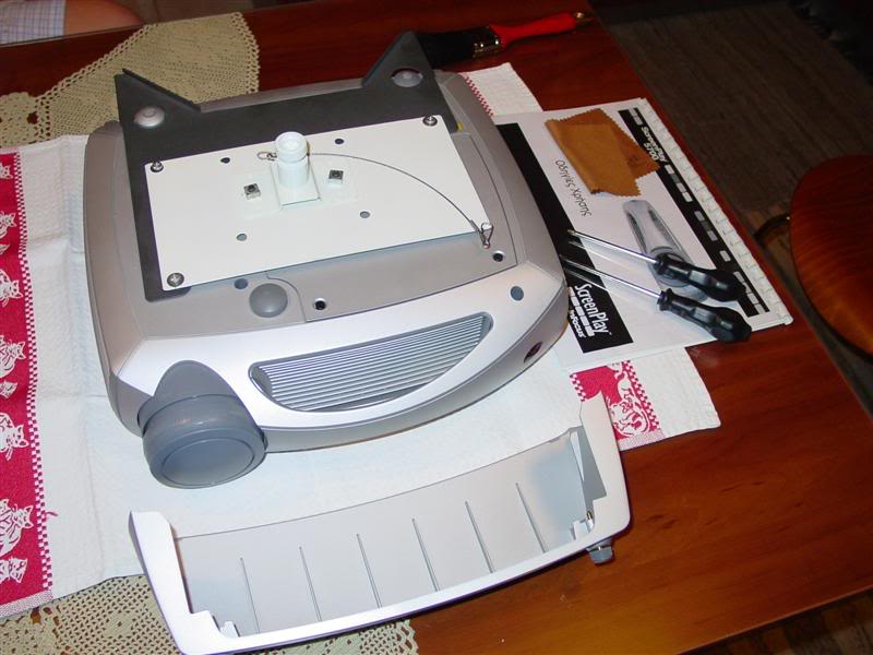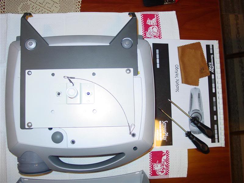 Το καπάκι μπροστά από τον προβολέα ουσιαστικά είναι για να "κρύβει" τα καλώδια στο πίσω μέρος του 5700. Γιαυτό αν προσέξετε, η γκρι πλαστική πλάκα, κάτω από την λευκή της βάσης, έχει τις δύο προεξοχές πίσω δεξιά και αριστερά. Εκεί βιδώνει το πλαστικό αυτό....