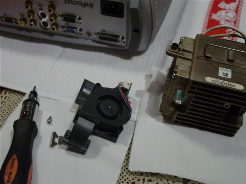 Εδώ η βίδα με σχήμα 6γωνο αστέρι (επομένως είναι και το μόνο "ειδικό" εργαλείο που θα χρειαστεί ο προβολέας αν πάμε για καθάρισμα. Αν αλλάζουμε την λάμπα δεν χρειάεται γιατί κατά 99% η νέα λάμπα θα έχει και το ανεμιστηράκι μαζί)