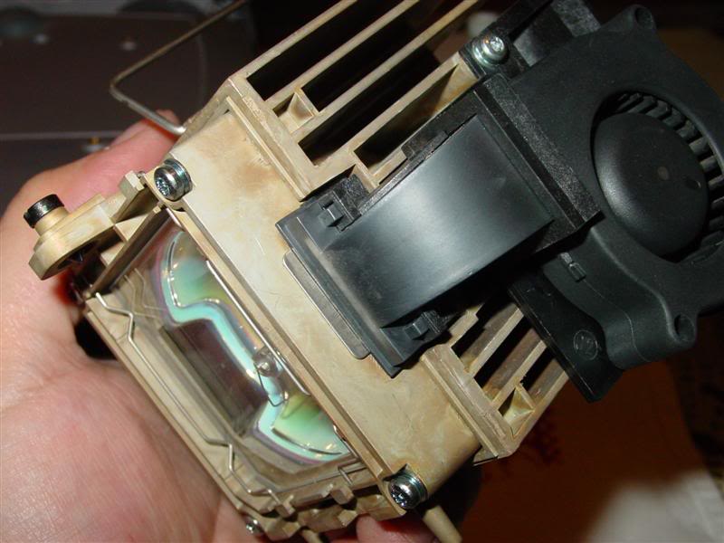 Αφού έχω καθαρίσει το ανεμιστηράκι (με μαλακό πινέλο), κρατώ σταθερά το λαμάκι και το "σφηνώνω" στη θέση του (έχει και ένα αυλάκι εκεί το σώμα της λάμπας) με το πλαίσιο του ανεμιστήρα.......