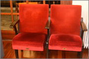 Τις θέσεις του καναπέ συμπλήρωσαν δύο κόκκινα, βελούδινα, αναδιπλούμενα καθίσματα της εθνικής λυρικής τα οποίο αγόραστηκαν από παλαιοπωλείο. Πριν την τοποθέτηση τους στο χώρο τα καθίσματα αποσυναρμολογήθηκαν, βάφτηκαν και συντηρήθηκαν.