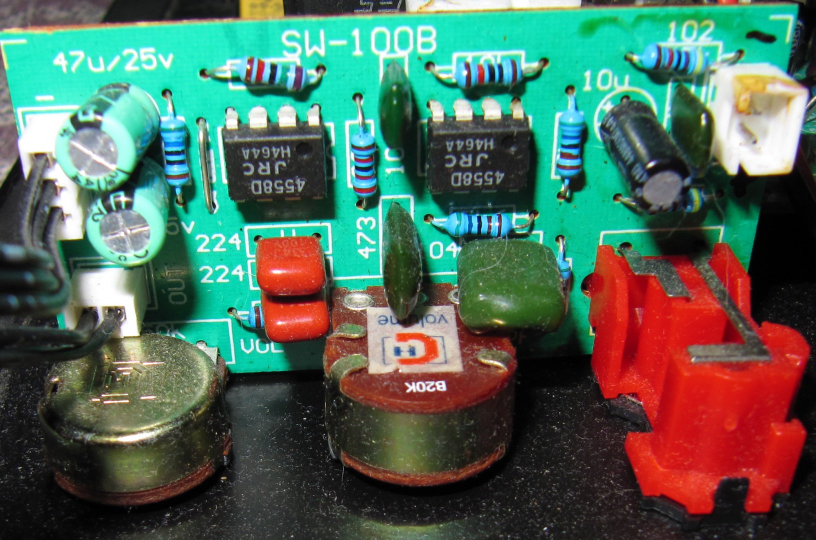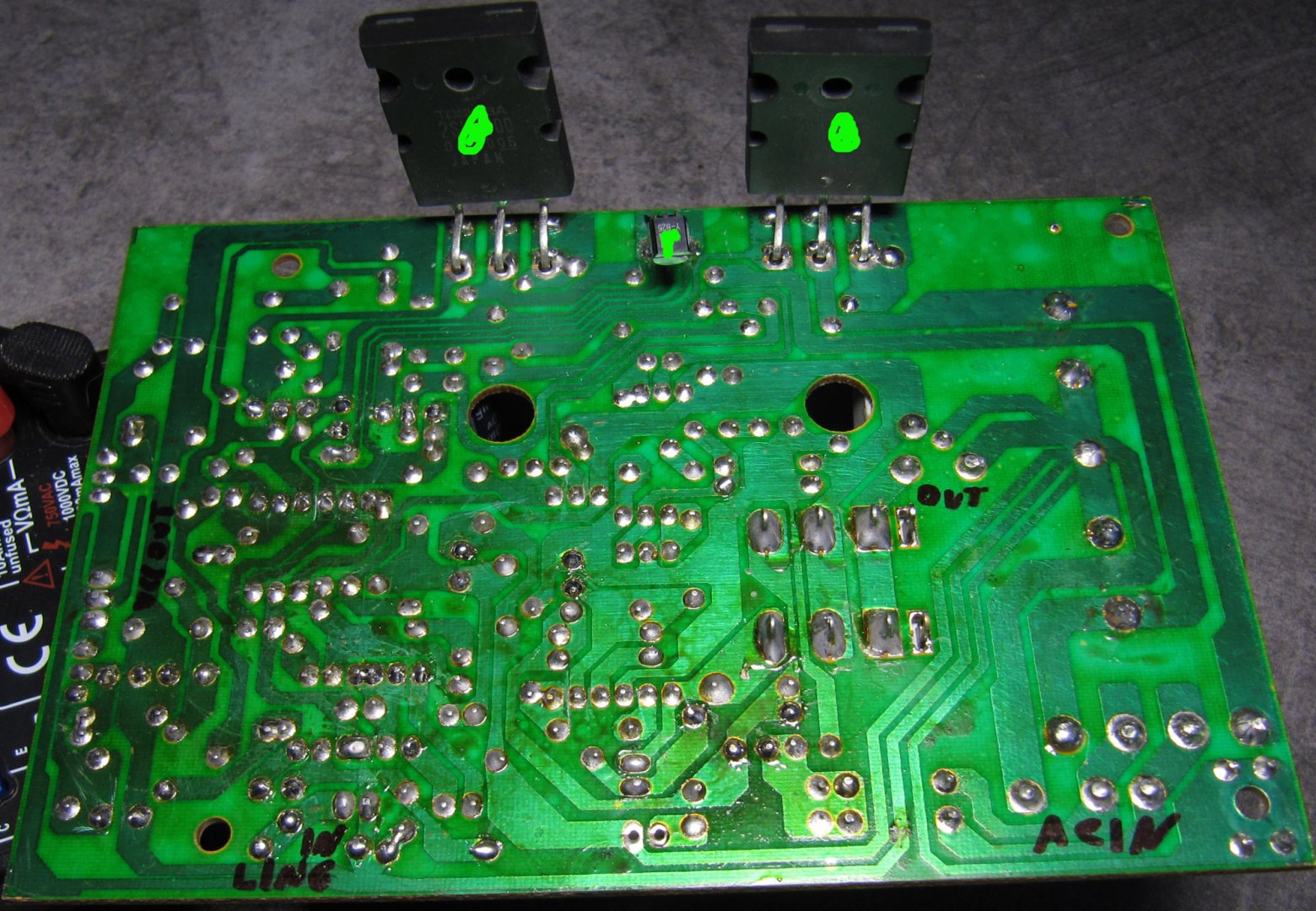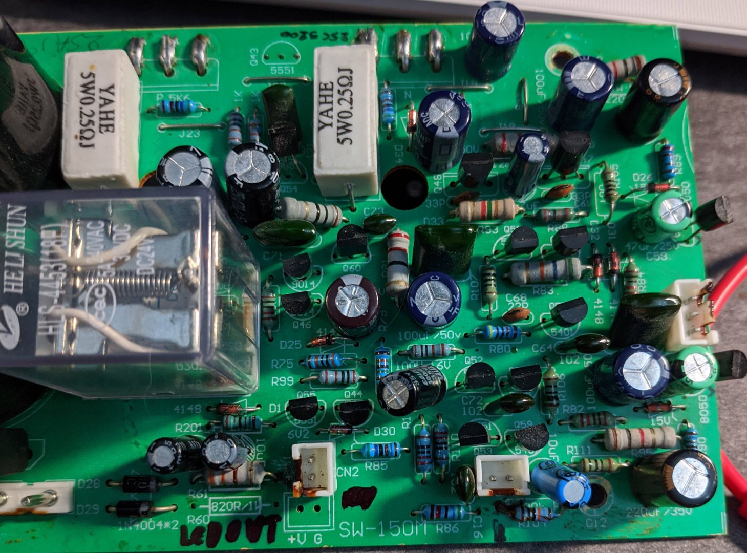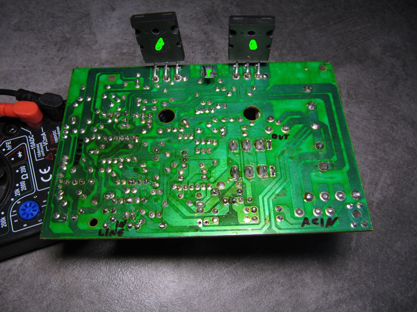 Αφού είδα ότι δουλεύει, έλεγξα τα πάντα πάνω στην πλακέτα του ενισχυτή και βρήκα κάποια καμμένα εξαρτήματα.
