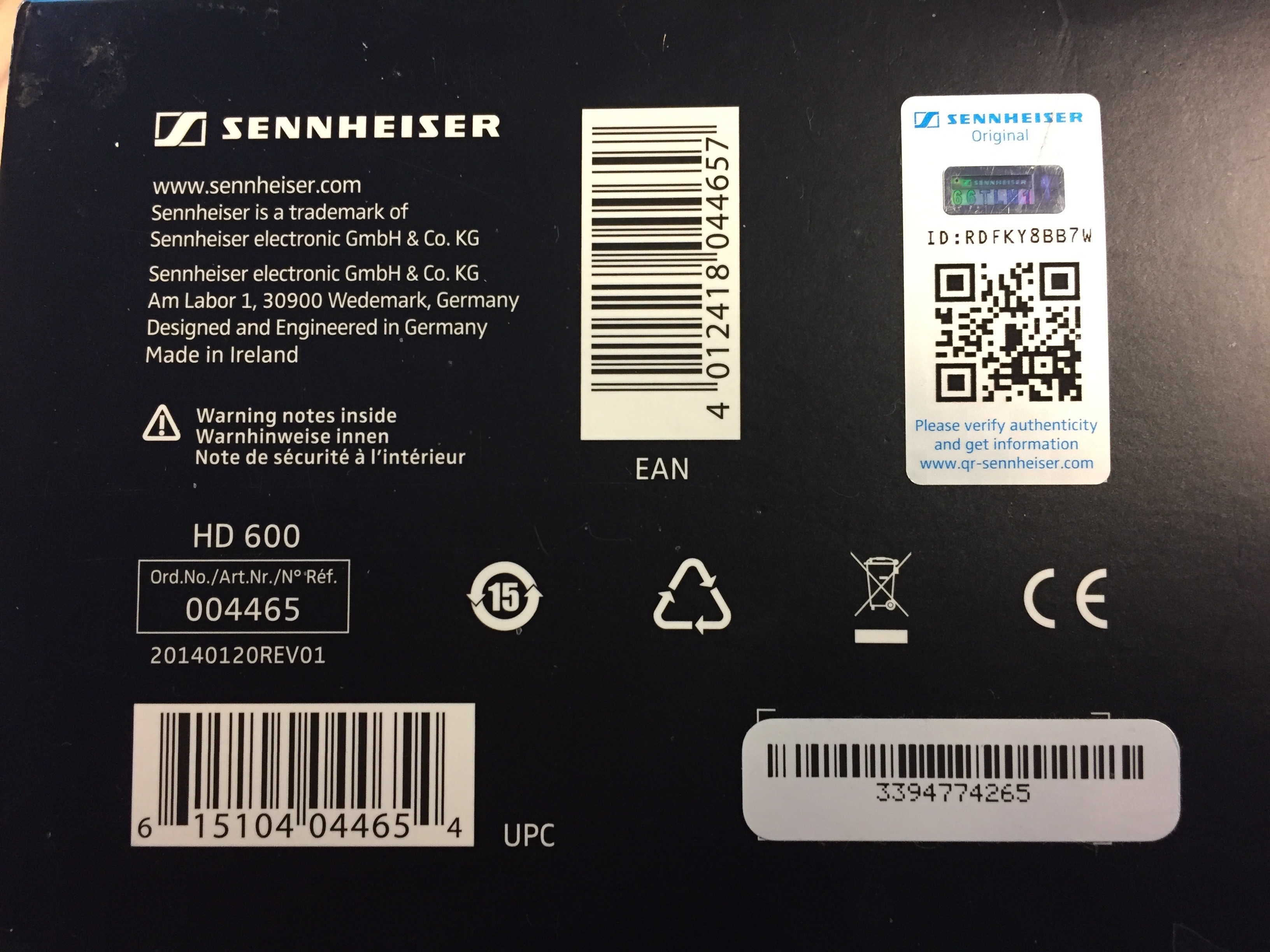 Δίδονται μαζί με το κουτί τους και απόδειξη αγοράς, αν και βρίσκονται πλέον εκτός εγγύησης. Στις φωτογραφίες μπορείτε να δείτε τους κωδικούς αυθεντικότητας της Sennheiser και να επιβεβαιώσετε και μόνοι σας το αποτέλεσμα.
