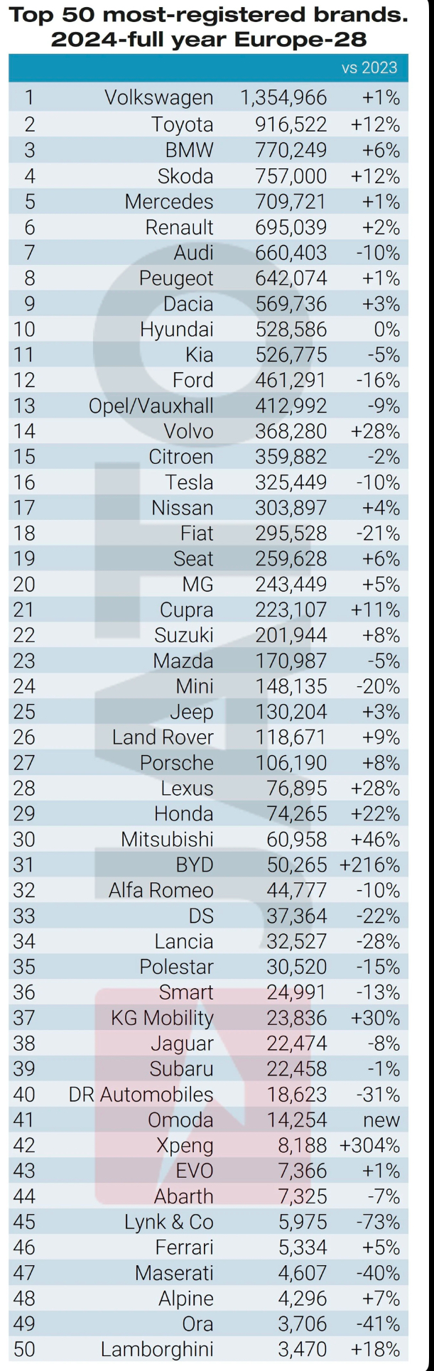 The Volkswagen Group remained the top-seller, with more than 427,000 units of its electric models registered in 2024. Its share of the BEV market fell slightly from 22.2% in 2023 to 21.5% last year and remains below its share of the wider new passenger vehicle market, which stood at 26.1% in 2024. Tesla followed in second position….και με -10%