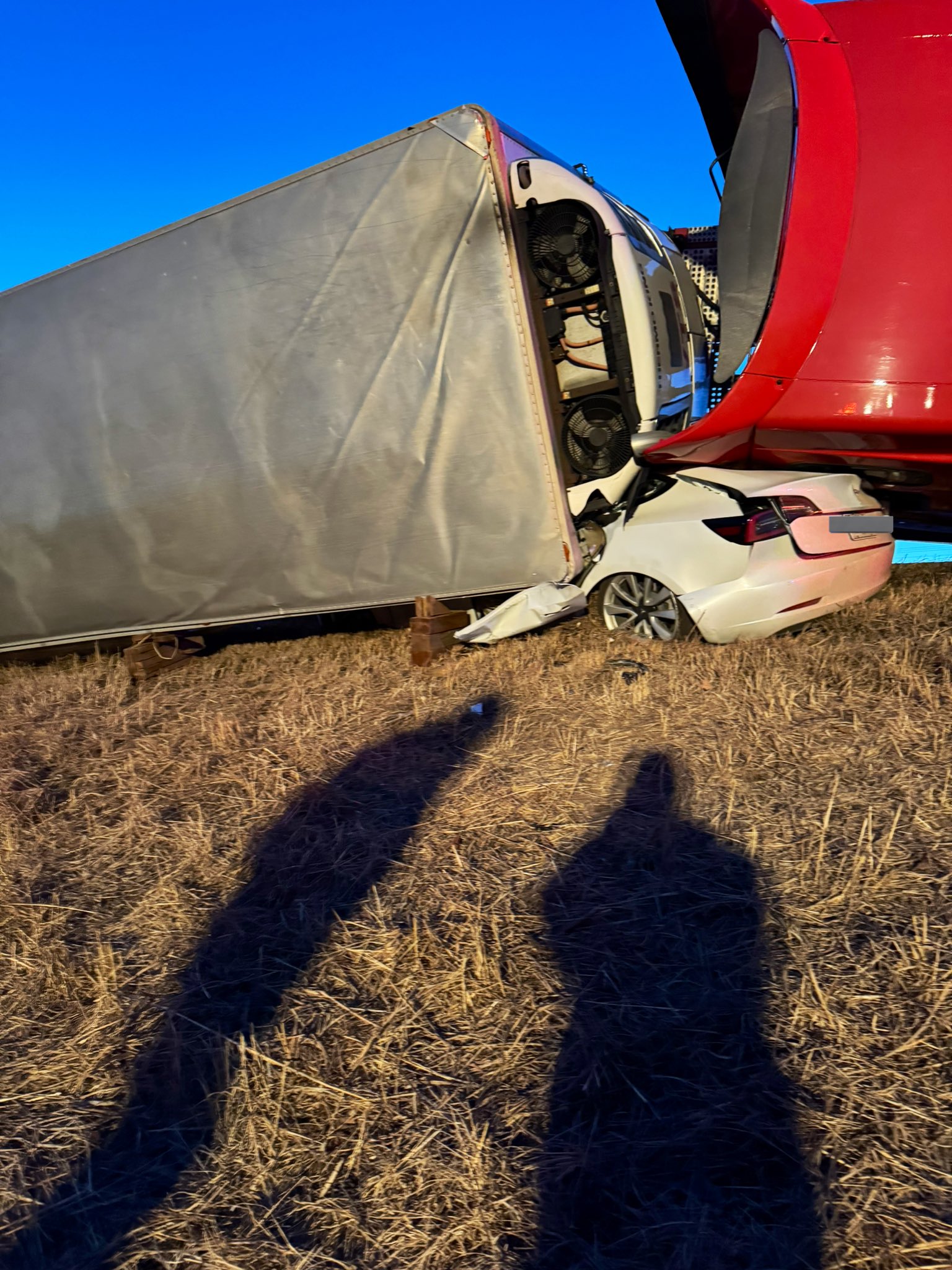 Αν ήταν ο συνοδηγός ή επιβάτης πίσω, δεν θα έκανε μάλλον ποτέ άλλη παραγγελία...Το φορτηγό ήταν δίπλα του, έχασε τον έλεγχο και το πλάκωσε. Ο οδηγός βγήκε με κάτι γρατσουνιές. Παρήγγειλε ήδη νέο Model 3.