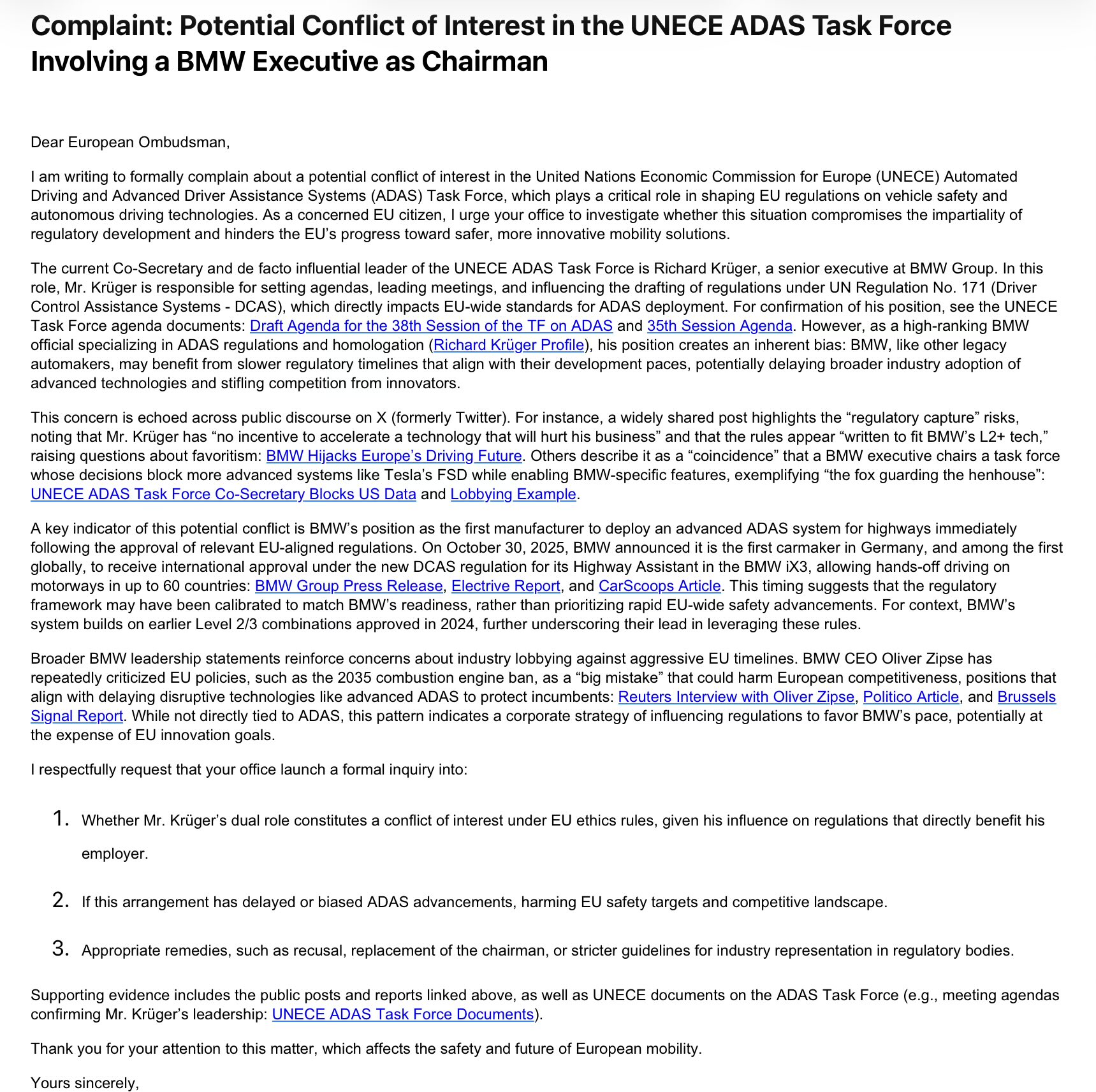 Δεν έχουν άδικο τυπικά στην συγκεκριμένη περίπτωση. European Ombusdman και DG MOVE είναι υπηρεσίες της Ευρωπαϊκής Ένωσης, η UNECE είναι των Ηνωμένων Εθνών, οπότε δεν έχει δικαιοδοσία λογικά καμιά υπηρεσία της ΕΕ να υποδείξει πώς θα λειτουργεί η UNECE, τουλάχιστον όχι άμεσα.Ευρωπάρα, σα να λέμε Ελληνικό δημόσιο.