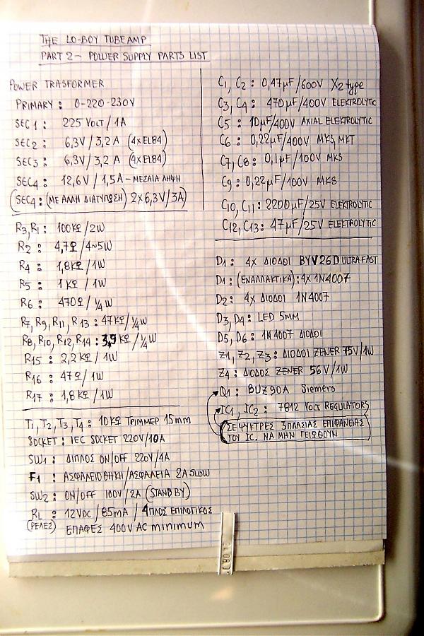 Η καθε EL84 θελει στα νηματα 6.3V / 0.76 Amp.