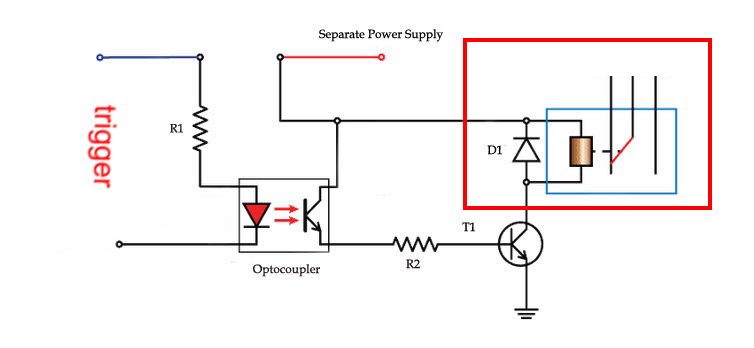 • ένα optocoupler - για πλήρη απομόνωση της συσκευής που στέλνει το trigger και της συσκευής που το δέχεται