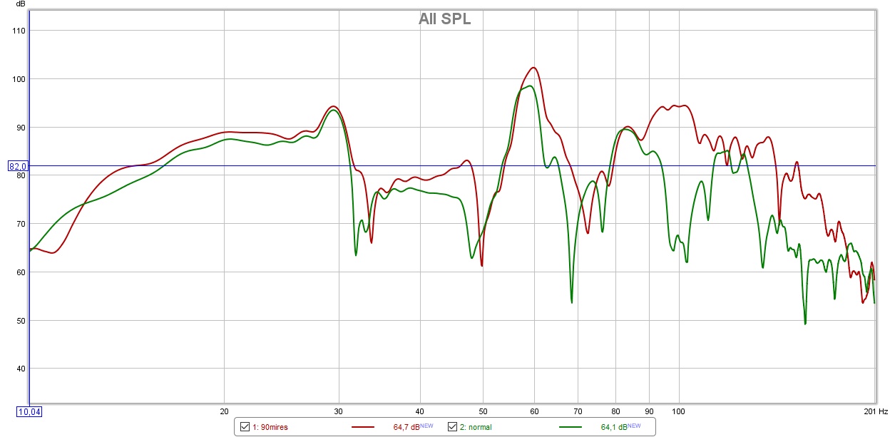 Φαίνεται σαφής βελτίωση με την περιστροφή.2 βραδυνές γρήγορες μετρήσεις του sub. Στη normal θέση του και με περιστροφή 90μοίρες προς τον τοίχο αριστερά