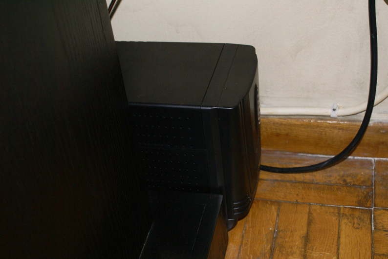 Όσο για τον θόρυβο του ανεμιστήρα του Accupower, ήδη βρήκα τη λύση! Όπως μπορείς να δεις στη δεύτερη photo, το «έθαψα» κυριολεκτικά στη πίσω γωνιά του σαλονιού, πίσω από τη τεράστια ξύλινη βάση του πίσω περιφερειακού ηχείου, του έριξα μπροστά του και τη κουρτίνα, και πλέον δεν ακούγεται σχεδόν καθόλου! Δεν θέλω άλλωστε ούτε να το βλέπω, αλλά ούτε και να το ακούω το Accupower! )(