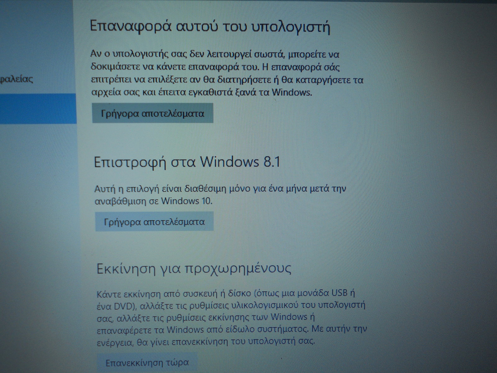 Αν διαλέξεις επαναφορά στο προηγούμενο λειτουργικό [τα 10άρια παρέχουν αυτή τη δυνατότητα μέσω των "Ρυθμίσεων" (Settings)], τότε θα ξαναγυρίσεις στα 8.1.
