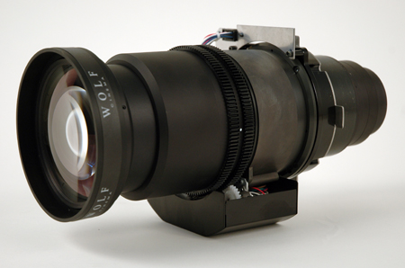 Variscope severely limits the distance at which the projector can be placed from the screen, since the zoom range is taken up with this function. So Wolf also offers an anamorphic-lens option called Variscope Ultra, which also uses the highest-grade optics and includes a motorized sled. In addition to allowing more flexible placement, it also extends the possible aspect ratios all the way to 2.70:1.