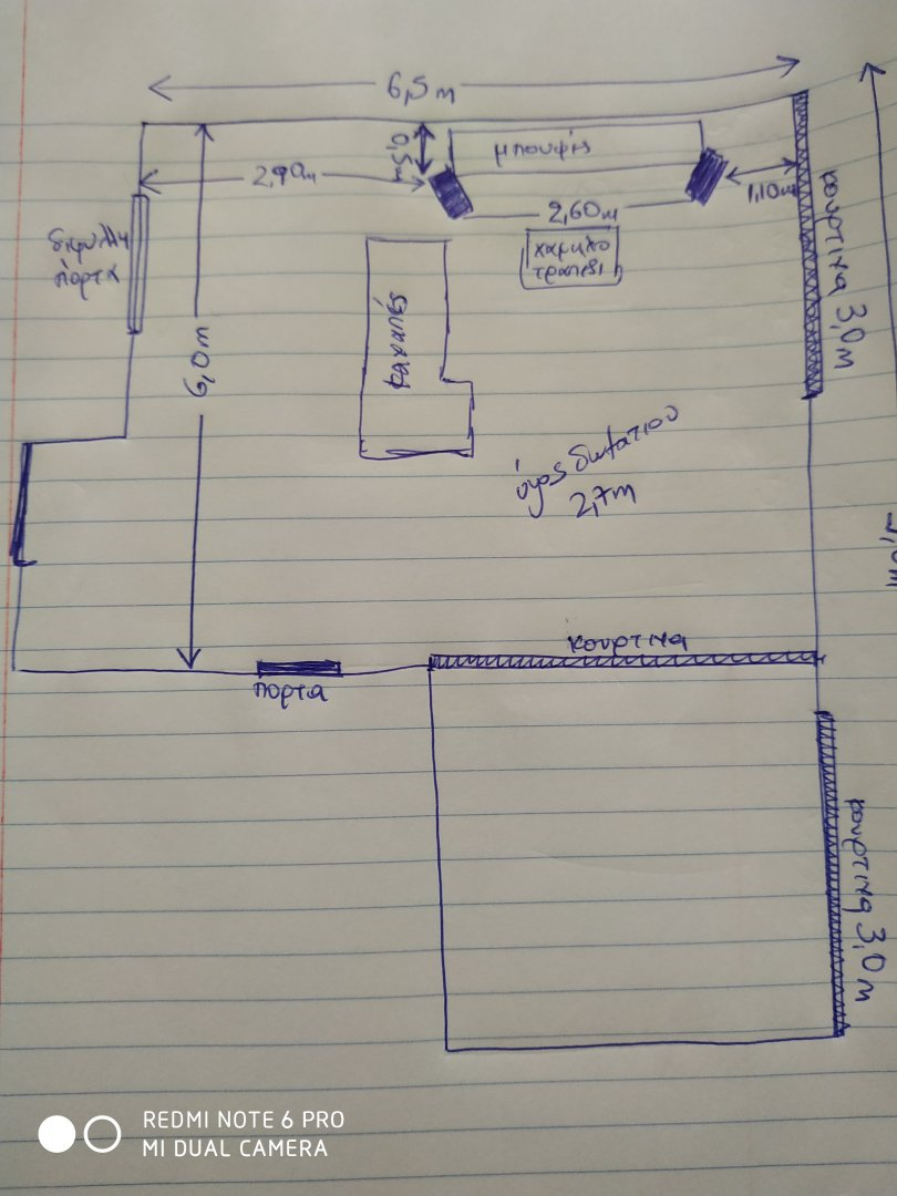 Δεν θέλω να σε κουράζω (στην παρούσα φάση:angel: ). Τα ηχεία ήρθαν συμμετρικά με ίση απόσταση από τα πλαϊνά τοιχώματα. Η διφυλλη πόρτα είναι ξύλινη χωρίς τζαμί. Οι τοίχοι τούβλο, σοβας. Το τραπέζι κι ο καναπές μετακινήθηκαν αντίστοιχα, ωστόσο παραμένουν εντός του τριγώνου το πρώτο και πολύ κοντά ο δεύτερος....